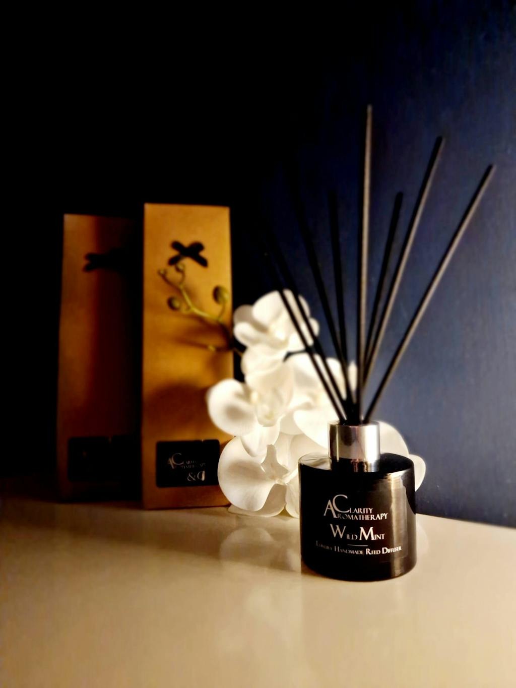 The box has a distinctive, angled profile that helps it stand out on the shelf, making it a stylish choice for diffuser packaging.