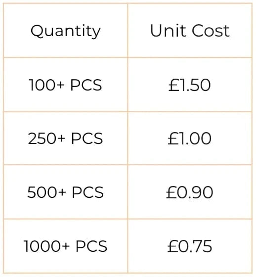 Step Three – Place a bulk order using your sample reference. Lead time is 4 weeks from payment.